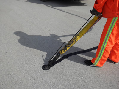 3、粘结性强:该灌缝材料与路面裂缝缝壁粘结能力强,当路面裂缝受冷收缩或受热膨胀时,灌缝材料仍能与之牢固粘结,并且遇水时粘结面不开胶。