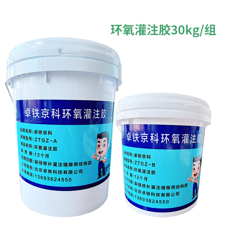 本产品为双组份包装,大桶为主剂(A组分)净重20kg,小桶为固化剂(B组分),净重10kg。